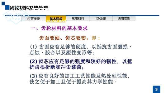 (1)齒輪材料須滿足工作條件的要求:不同的工作條件選用不同的齒輪材料